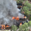 İlk belirlemelere göre bir karavanda başlayan alevler, rüzgârın da etkisiyle kısa sürede çevredeki tiny house ve diğer karavanlara, ardından da ormanlık alana sıçradı.