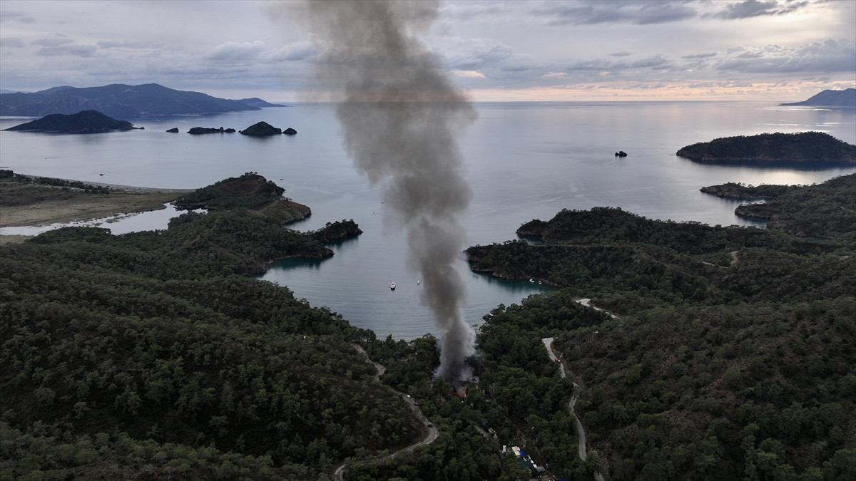Katrancı Koyu’nda korkutan alevler: Karavanda başlayan yangın ormana sıçradı!