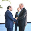 Şarm eş-Şeyh’te Cumhurbaşkanı Sisi tarafından karşılanan Cumhurbaşkanı Erdoğan’a Dışişleri Bakanı Hakan Fidan, Cumhurbaşkanlığı İletişim Başkanı Burhanettin Duran ve Cumhurbaşkanı Dış Politika ve Güvenlik Başdanışmanı Akif Çağatay Kılıç eşlik etti.