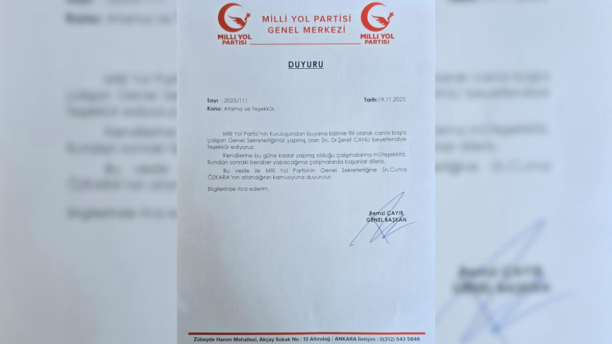 Milli Yol Partisi'nde Genel Sekreterlik koltuğunda değişiklik yaşandı. Genel Başkan Remzi Çayır göreve o ismi atadı.