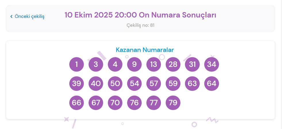 10 EKİM 2025 ON NUMARA ÇEKİLİŞ SONUÇLARI