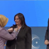 Konuşmasının ardından düzenlenen rozet töreninde Özlem Çerçioğlu’na AK Parti rozeti takıldı.