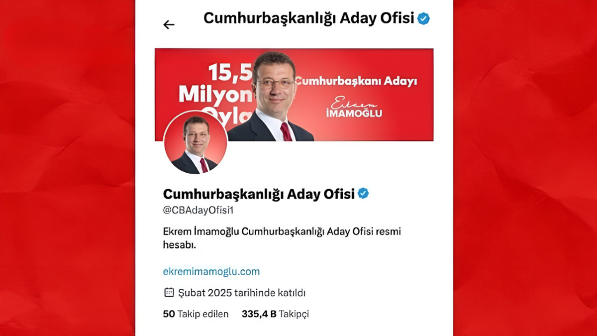 CHP'nin tutuklu Cumhurbaşkanı adayı Ekrem İmamoğlu'nun 19 Mart operasyonları kapsamında tutuklanmasının ardından, sosyal medya hesaplarına yönelik adli engellemeler de devam ediyor. İlk olarak 8 Mayıs'ta, İmamoğlu'nun kişisel X hesabına "millî güvenlik" gerekçesiyle erişim engeli getirilmiş ve hesap Türkiye'de görünmez kılınmıştı. Bu ilk engelleme üzerine İmamoğlu'nun paylaşımları ve açıklamaları, 'Ekrem İmamoğlu Cumhurbaşkanlığı Aday Ofisi' (@CBAdayOfisi) adlı yeni bir hesaptan yapılmaya devam etmişti.