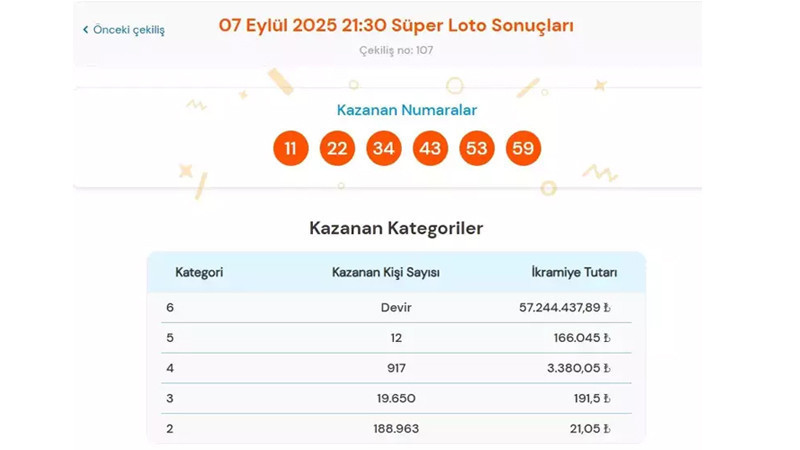 Süper Loto kazandırmaya devam ediyor! Milyonlarca liralık büyük ödül devretti, kazanacak talihlilerini bekliyor. Peki Süper Loto'da 7 Eylül 2025 çekiliş sonuçları belli mi? Şanslı numaralar hangileri? İşte detaylar