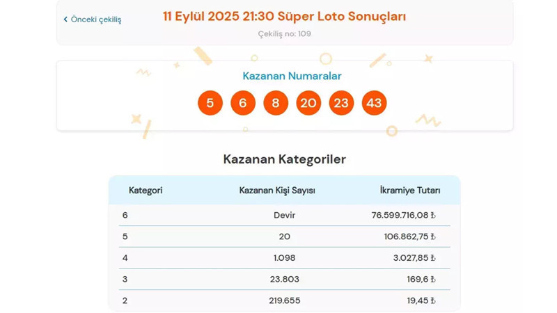 9 EYLÜL 2025 SÜPER LOTO SONUÇLARI