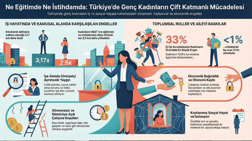 25 Kasım Kadına Yönelik Şiddetle Uluslararası Mücadele Günü’nde yayımlanan saha verileri, Türkiye’de genç kadınların eğitim ve istihdamdan dışlanmasına yol açan görünmez baskıları ortaya koyuyor.