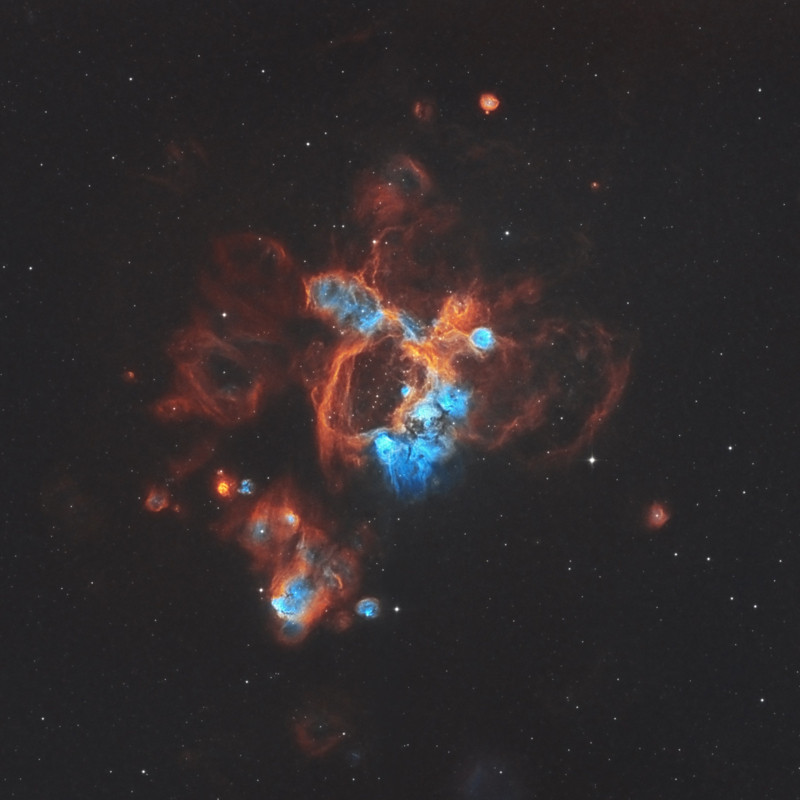 Eserin bilimsel adı NGC 1929 olup, Samanyolu’nun uydu galaksisi olan Büyük Macellan Bulutu içinde yer alan bir yayma bulutsusunu gösteriyor. Genç ve sıcak yıldızlardan yayılan morötesi ışınımın, bulutsudaki gazları iyonize etmesiyle ortaya çıkan renkli ve büyüleyici bir manzaraya sahip.