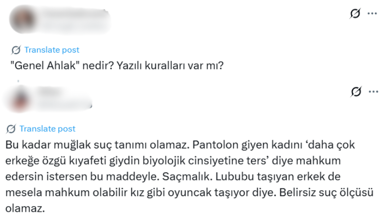 Bir başka yurttaş ise “Genel ahlak nedir, kim belirleyecek?” diyerek sorunun tanımında keyfiliğe dikkat çekti.