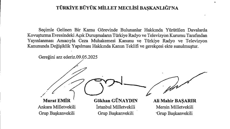 CHP Ankara Milletvekili Murat Emir, resmi X hesabından yaptığı açıklamada, "Doğru, ama TBMM aylarca Saray’ın talimatını bekliyor! Cumhuriyet Halk Partisi Grup Başkanvekilleri olarak 9 Mayıs 2025'te kanun teklifimiz meclise sunduk. Seçilmişlerin yargılaması TRT’den canlı yayınlansın dedik. Adrese teslim sağda solda hazırlattığınız teklifler yerine, milletvekilleri olarak hazırladığımız davaların TRT'den canlı yayınlanması teklifimizi Genel Kurul'a indirin! Kumpas mı, adalet mi halk izlesin!" dedi.