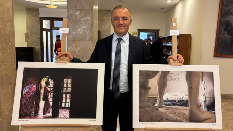 Kavramsal fotoğraf sanatıyla ilgilenen Harun Kaynak, sergideki bir eserinin, Rusya'daki bir müzeyi gezerken bu heykeli gördüm. Üstünde dokunmayın yazan bir heykel. Bu heykelin tam karşısında konumlanmış erkek heykelinin ayaklarının hizasından fotoğrafladım ve ortaya 'Artık ona dokunmayın' isimli kavramsal fotoğraf çıktı. Harun Kaynak, eserlerini satılığa çıkardığını ve buradan elde edilecek geliri Mülkiye Burs Fonu'na bağışlayacağını duyurdu.