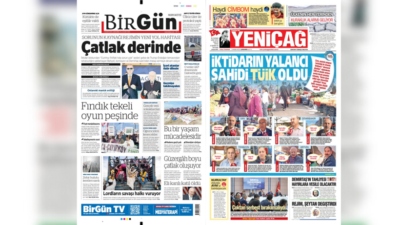 Bahçeli'nin ittifakı "sapa sağlam" ilan etmesine rağmen, muhalif BirGün gibi gazeteler bu manşeti "ÇATLAK DERİNDE" diyerek iktidar blokunun krizini iddia etti.
