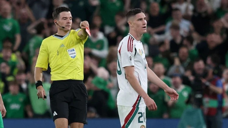 Macaristan’ın İrlanda’ya konuk olduğu 2026 FIFA Dünya Kupası Elemeleri F Grubu maçına Macarlar çok hızlı başladı ve dakikalar 15’i gösterdiğinde 2-0 üstünlüğü ele aldı. Macaristan’ın 2. golünü Liverpool’un 24 yaşındaki yıldızı Dominik Szoboszlai’nin asistinde Galatasaray’ın 28 yaşındaki Macar futbolcusu Roland Sallai kaydetti. Soyunma odasına 2-0 geride giden ev sahibi İrlanda, 49. dakikada Roma’ya transfer olan 20 yaşındaki Evan Ferguson ile farkı bire indirdi. Bu golden yalnızca 3 dakika sonra Roland Sallai rakibine yaptığı faul nedeniyle mücadelenin Alman hakemi Harm Osmers’ten direkt kırmızı kart gördü ve takımını 10 kişi bıraktı. 11’e 10 oynamanın avantajıyla ataklarını sıklaştıran İrlanda, aradığı golü 90+3. dakikada Adam Idah ile buldu ve karşılaşma 2-2 beraberlikle tamamlandı.