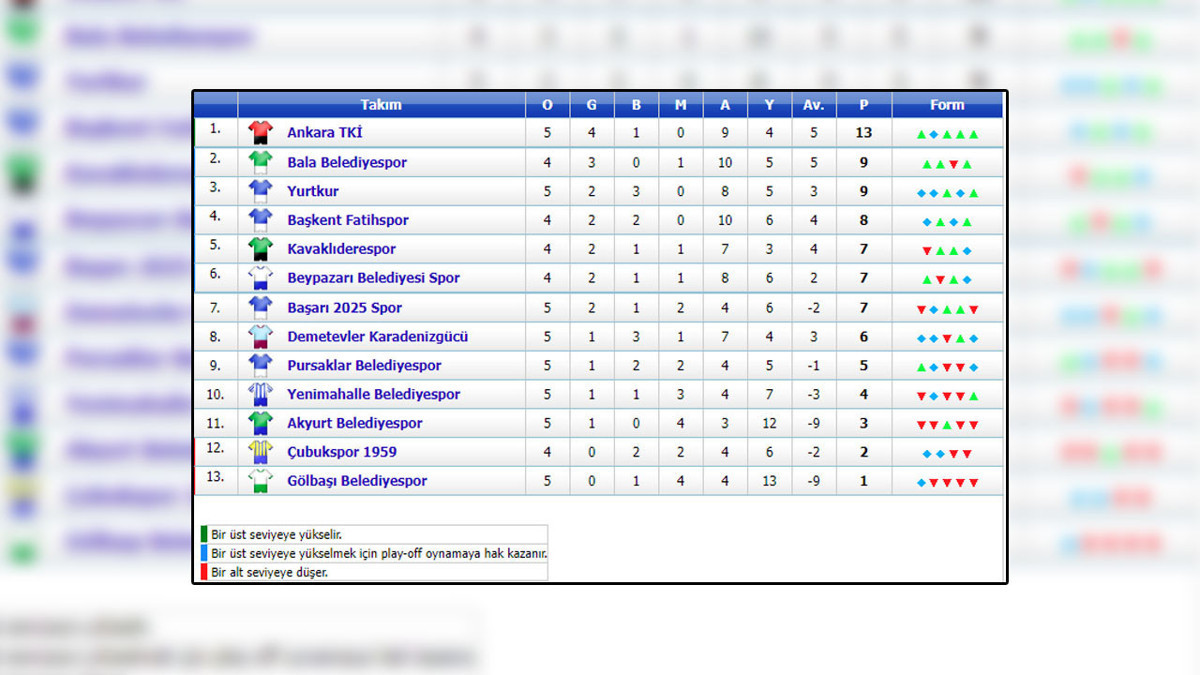 Ligin 5. haftasında sahasında lider Ankara TKİ’yi konuk eden Gölbaşı Belediyespor, bu haftayı da puansız kapattı. Ligin ilk haftasında evinde oynadığı Çubukspor 1959 karşılaşmasında berabere kalarak 1 puan alan Gölbaşı ekibi, sonraki dört haftada da mağlup oldu.