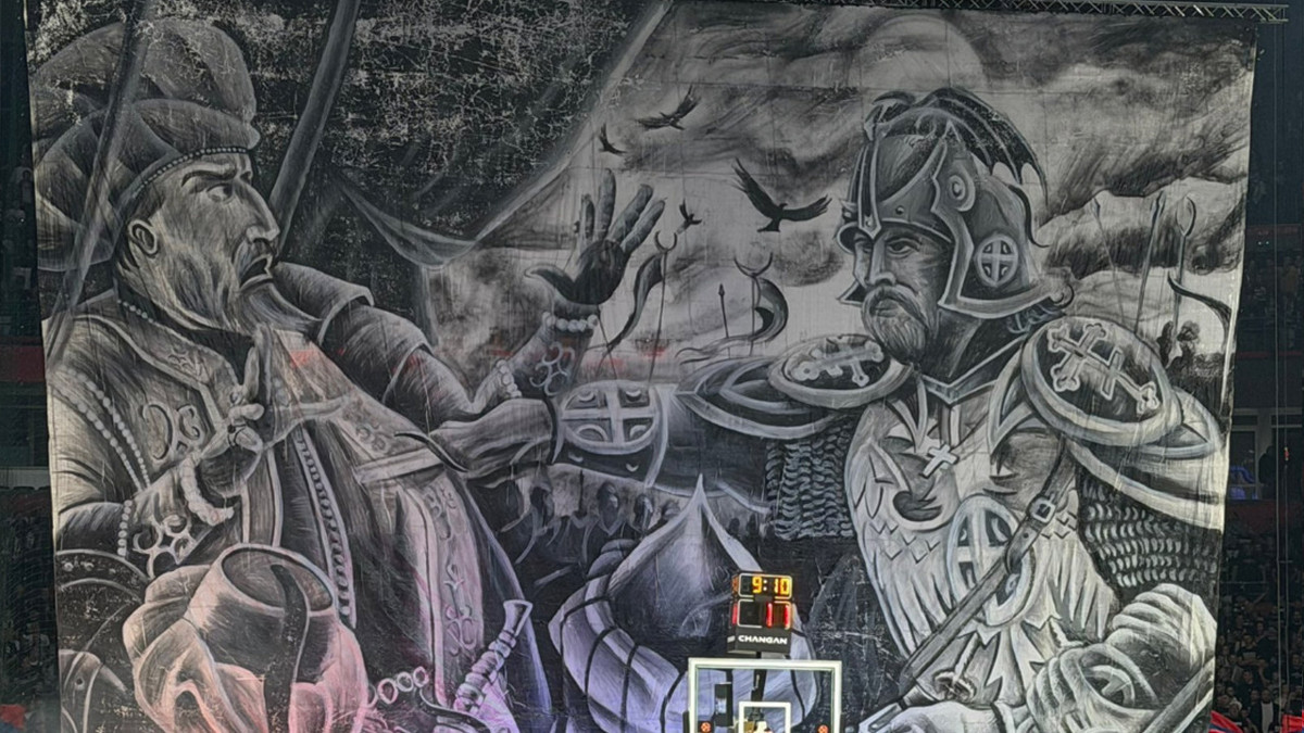 Maç sırasında Partizan tribünleri, 1389’daki I. Kosova Savaşı’nda Osmanlı Padişahı I. Murad’ı hançerleyerek öldüren Milos Obiliç’i tasvir eden bir pankart açtı. Tribünlerden aynı anda Türkler aleyhine uzun süre sloganlar yükseldi.