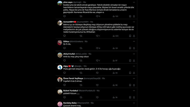 Kimi taraftarlar ise Teknik Direktör Hüseyin Eroğlu ile ilgili "istifa" paylaşımları yaparak yönetime seslerini duyurmaya çalışıyor.