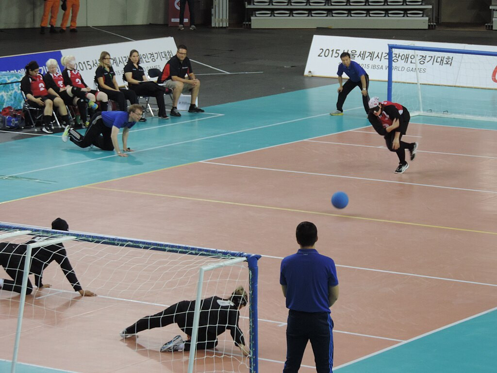 Oyuncular, eşitlik sağlamak için görme seviyelerinden bağımsız olarak göz bantları takar. Top, yaklaşık 1.25 kilogram ağırlığında ve içindeki ziller sayesinde ses çıkarır, böylece oyuncular topun yönünü işitsel olarak tespit eder.